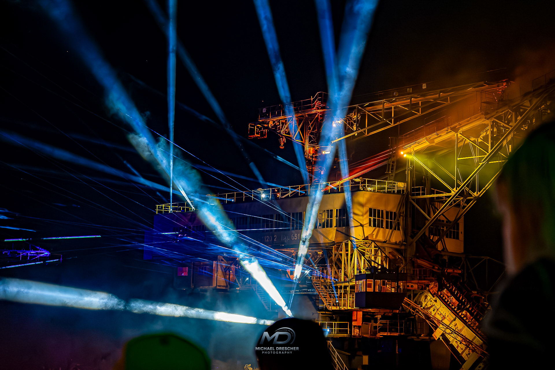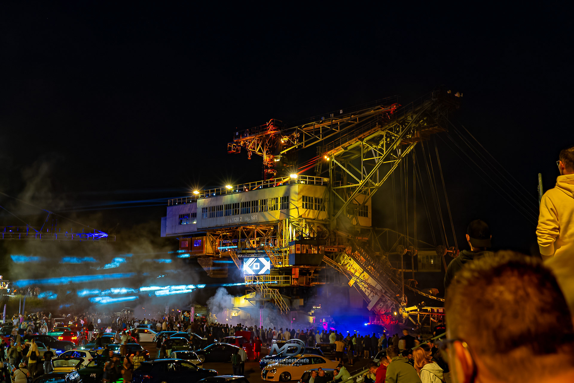 Als es langsam dunkler wurde, wechselte die Szenerie. Lichtshows, Laser, DJ-Sets und später ein großes Abschluss-Feuerwerk haben das Gelände verwandelt. Die Bagger strahlten in völlig neuem Licht, fast surreal.